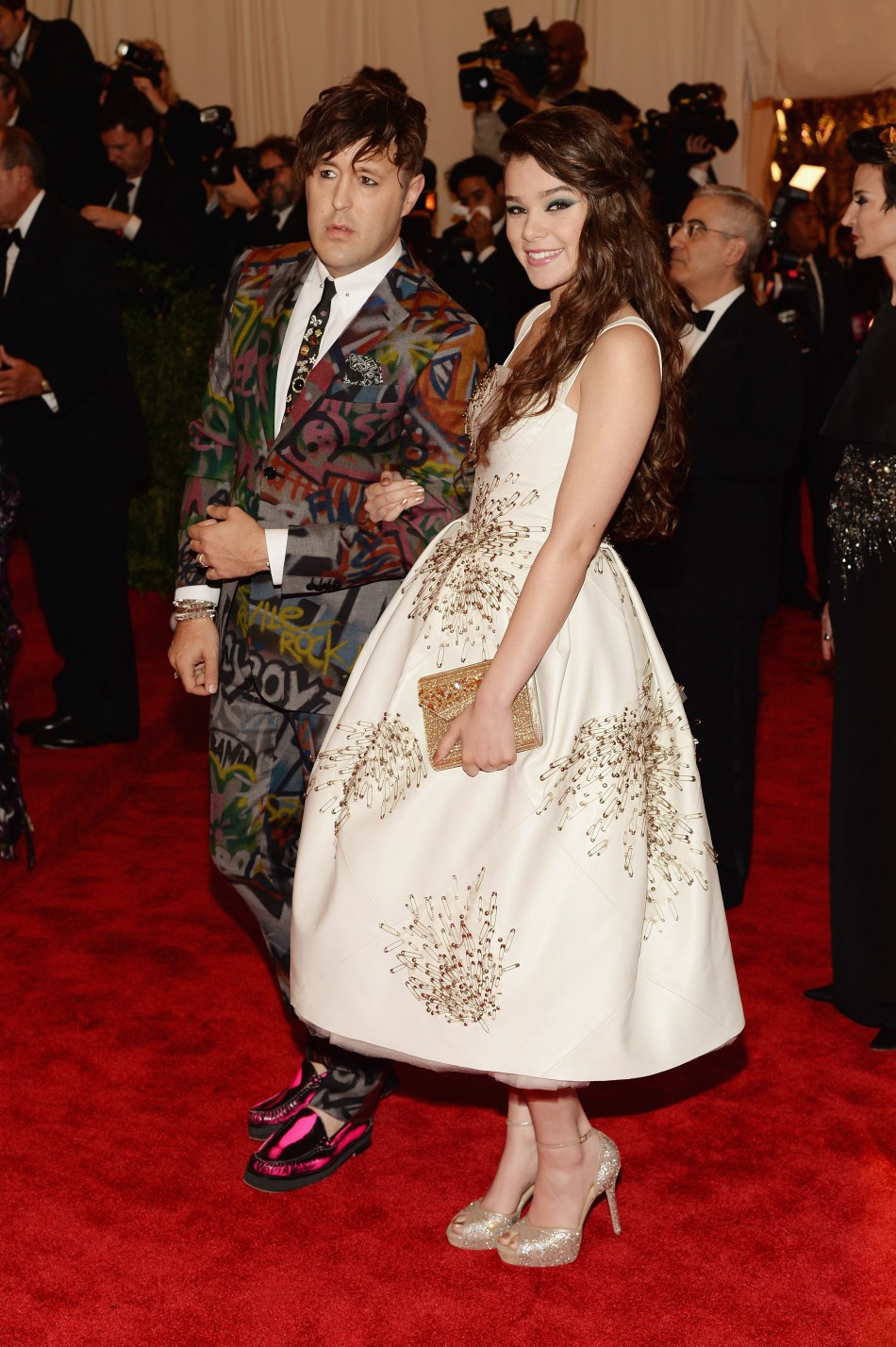 A few of the youngest stars graced the red carpet in haute couture fashions. 16 year old Hailee Steinfeld, star of the Award winning film True Grit wore a beautiful custom ivory in Dona Karan Ateleir. Side swept hair and lined eyes gave an edge to a sweet leather dress that was adorned with antiqued safety pins. Elle Fanning made a bold statement in a Tie dye Rodarte evening gown with blue eye shadow and Van Cleef & Arpels jewels.