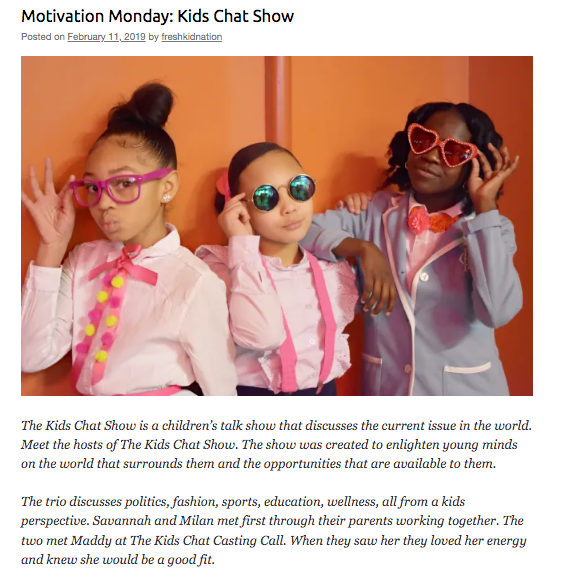 Are you a young person who gives back to your community? Do you have an inspiring life? Be a part of our Motivation Monday series on our website! Fresh Kid Nation is a children’s fashion and lifestyle blog established in 2013, we are looking to feature children and teen who are making an impact in their community! Are you a kid boss? Do you motivate and inspire other kids? We want to hear from you!