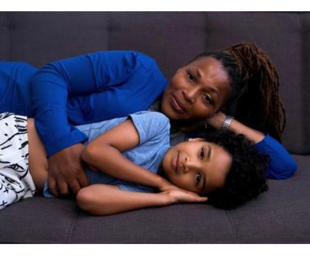 Our favorite family outfits, Tia Mowry Hardrict and her son Cree Hardrict. Cree wore Gucci sneakers with his black suit.